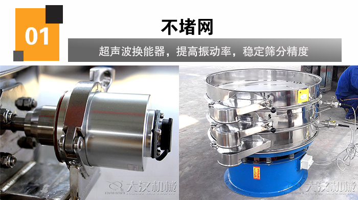 淀粉含水量高,易粘連堵網,影響淀粉的篩分精度與產量,面粉超聲波振動篩是將220V、50Hz或110V、60Hz電能轉化為36KHz高頻電能,輸入超聲波換能器,將其變成36KHz機械振動,保持網孔尺寸,可穩定篩分精度,減少重復過篩次數。