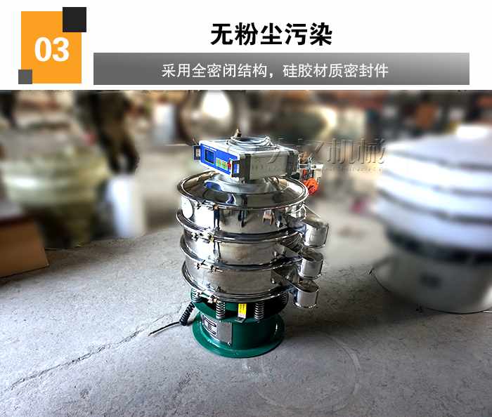 淀粉重量輕,所以在篩分過程中容易飛揚,對生產環境造成污染,超聲波振動篩采用全密閉結構,采用硅膠材質的密封件進行密封,再選擇德國進口膠水保證了其篩分工序的嚴密性,可以解決用戶對于生產環境的要求。
