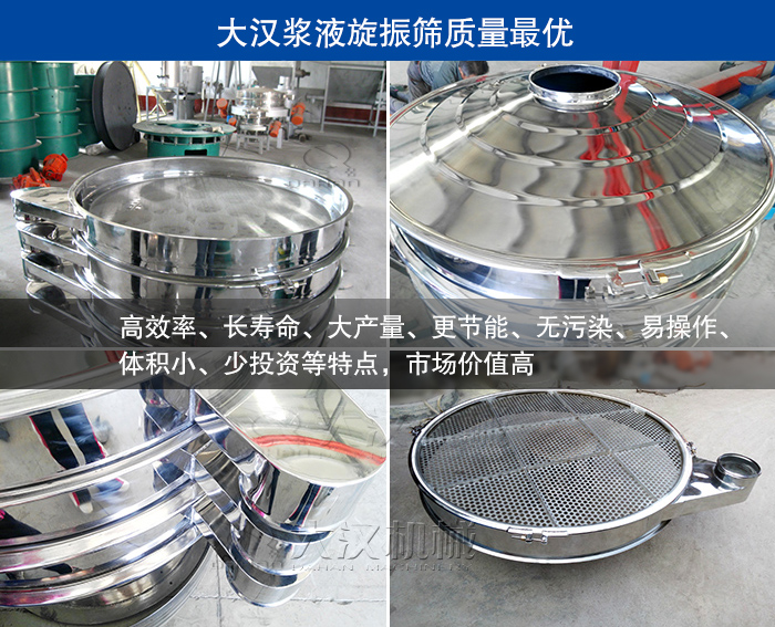 大漢漿液旋振篩選用優質原材料,并采用精良工藝設計打造而成,具有高效率、長壽命、大產量、更能耗低、無污染、易操作、體積小、少投資等特點,市場價值高。振動篩型號繁多,以滿足客戶不同需求,同時還根據客戶特殊需要,為其“私人訂制”更合適設備。