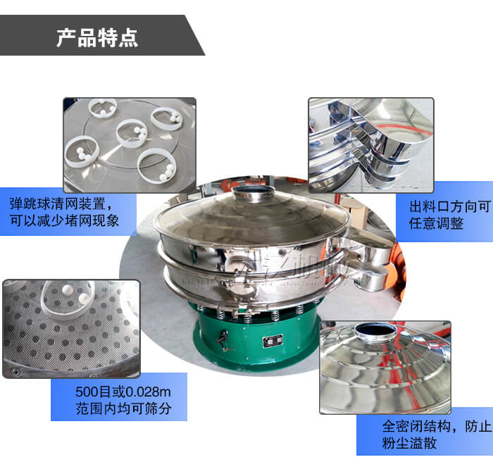 4、采用全密閉結(jié)構(gòu),防止粉塵溢散,液體飛濺,篩分效率高,還有專門的清網(wǎng)裝置,可減少物料在篩分的過程中的堵網(wǎng)現(xiàn)象,進一步提高其篩分效率;