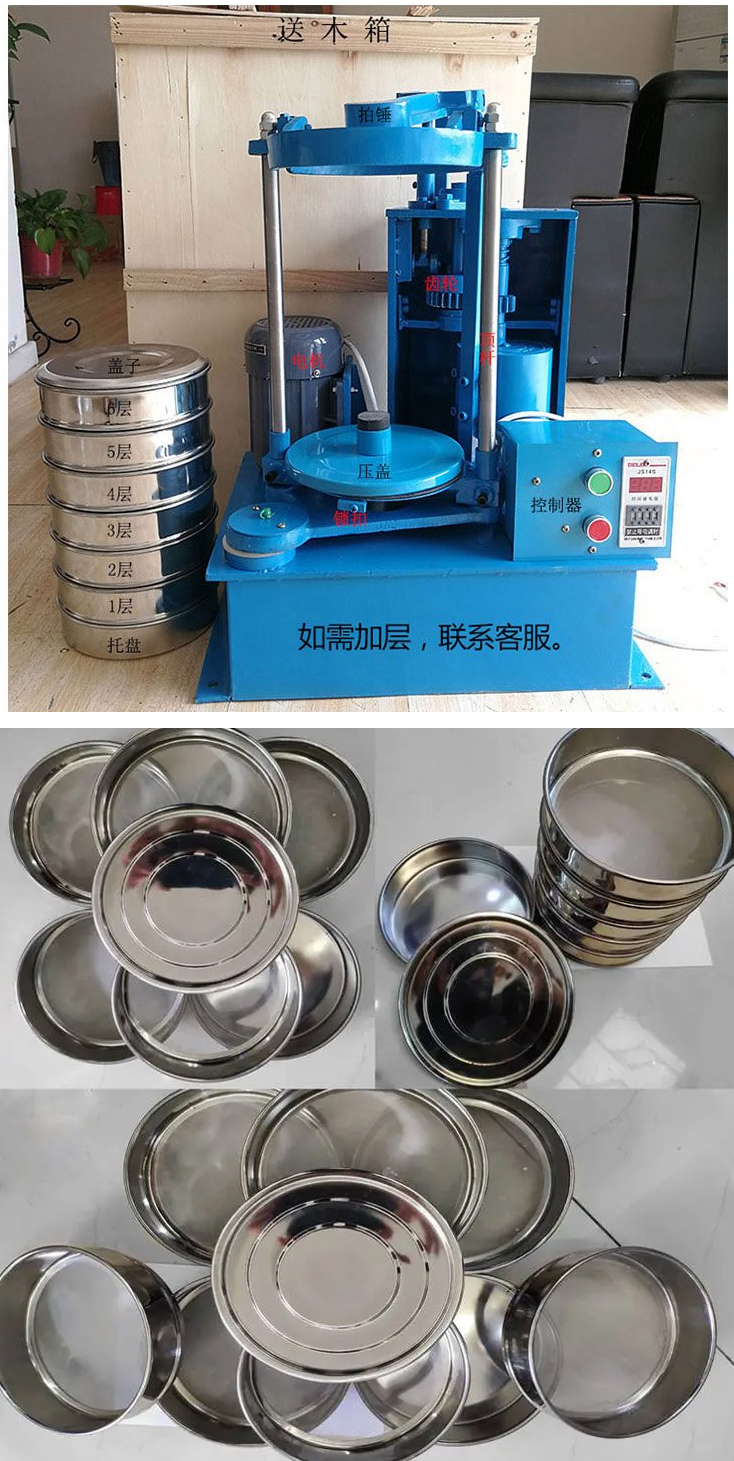 1、在按如分樣套篩時(shí),應(yīng)按照篩孔大小順序選放,從上到下孔徑依次變小,加上篩具底盤再將物料放入上層的篩具內(nèi),然后再把物料的套篩放在本機(jī)的底盤上,玄晶頂蓋手柄以固定篩具。